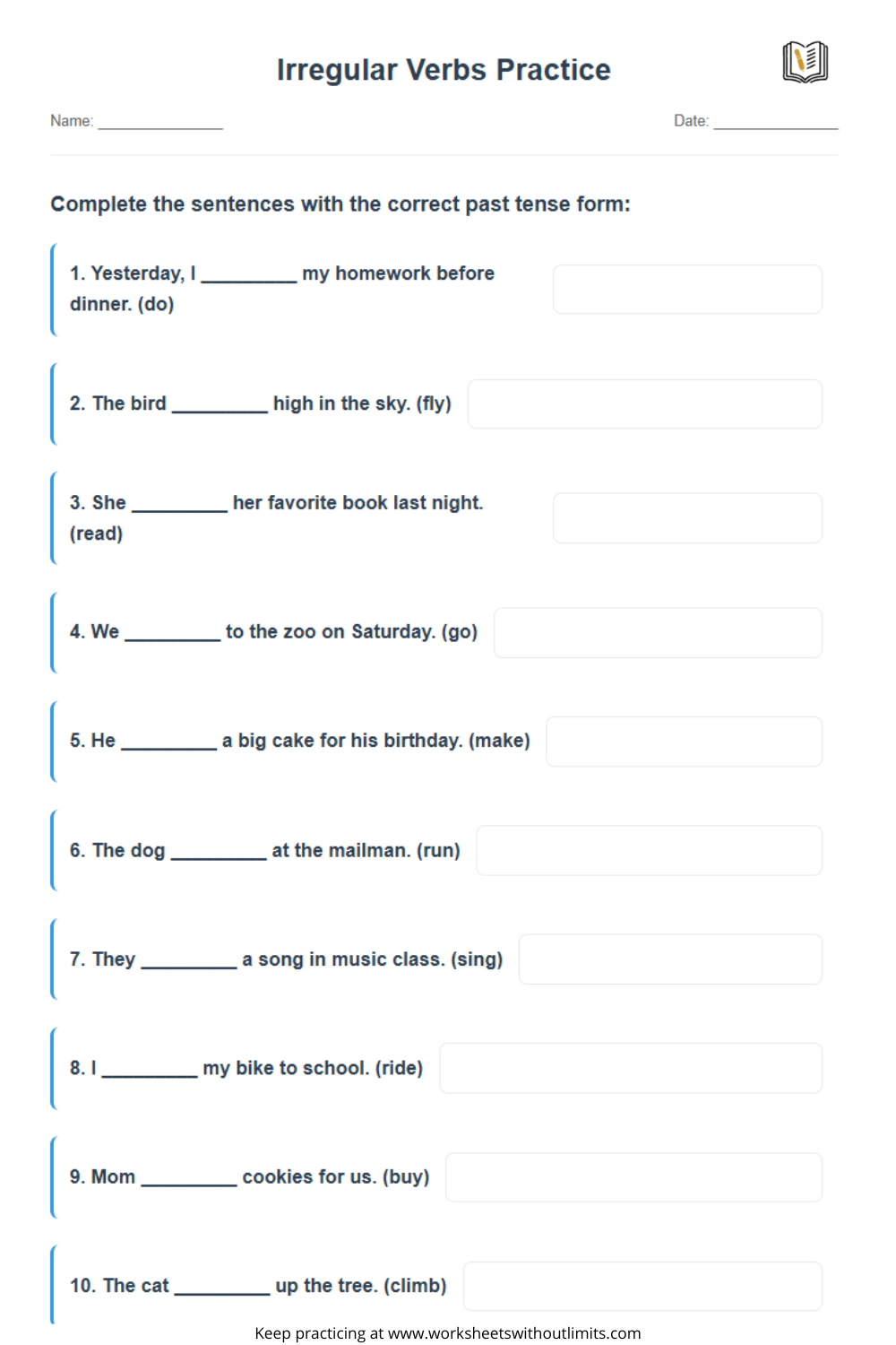 After consistent work with these irregular verbs worksheets, students should be able to: