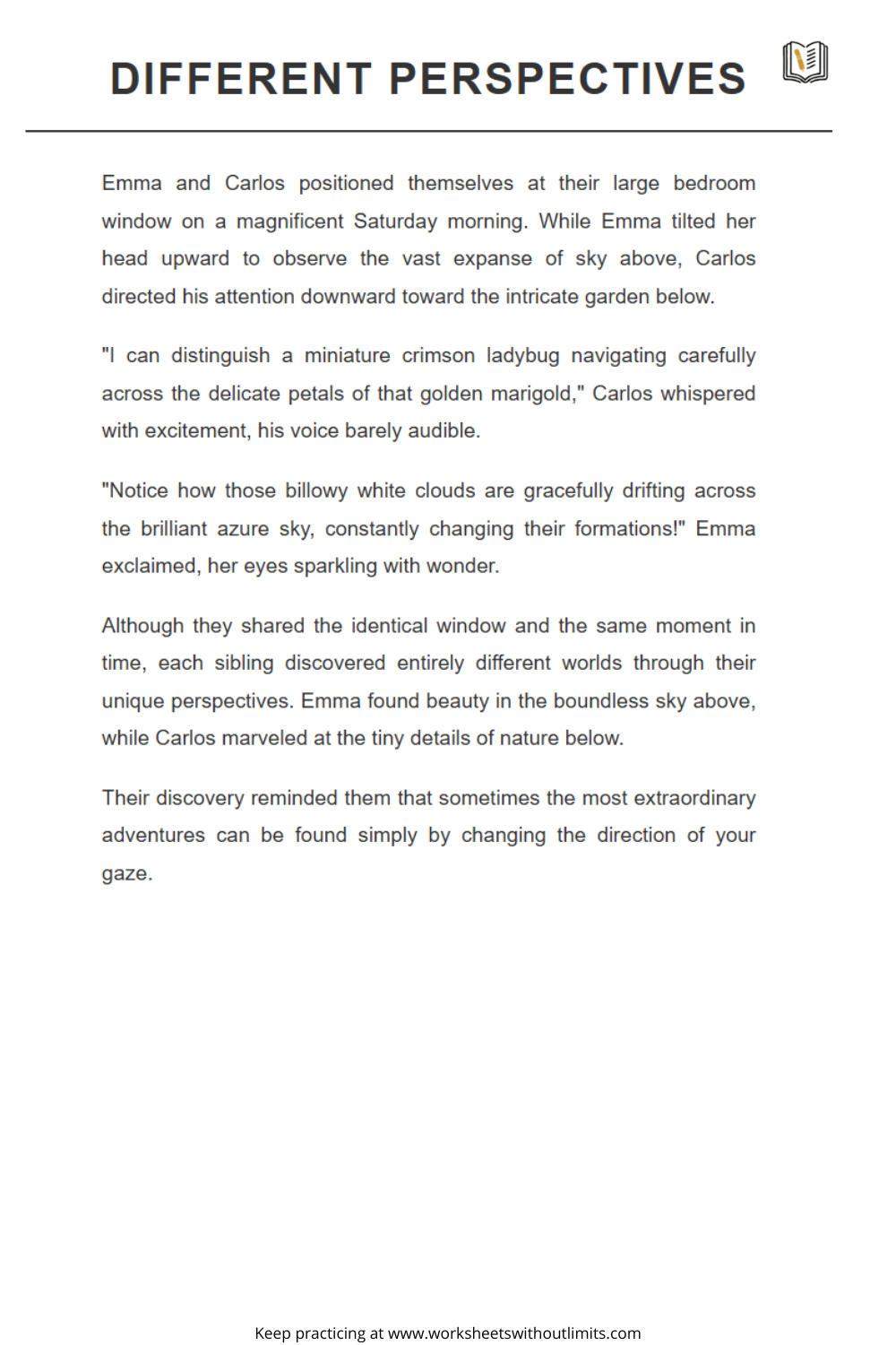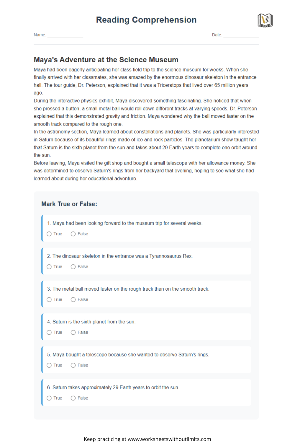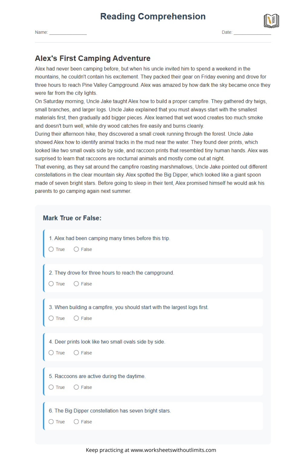 The 3rd grade reading comprehension worksheets on this site are flexible and easy to use. They’re suitable for a variety of classroom structures and home routines. Each worksheet includes: