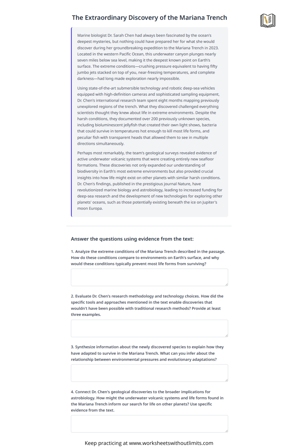- Citing textual evidence to support answers